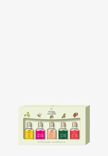 The Acqua Colonia miniature set is a collection of exceptional olfactory compositions that inspire the body, emotions, and senses. It includes five Eau de Cologne in olfactory variants, created with selected ingredients from nature, providing innovative and surprising olfactory experiences. These fascinating fragrances awaken the desire to smell and offer intense moments of well-being.