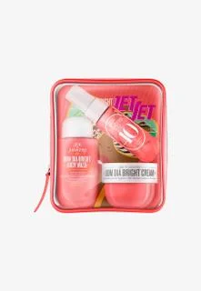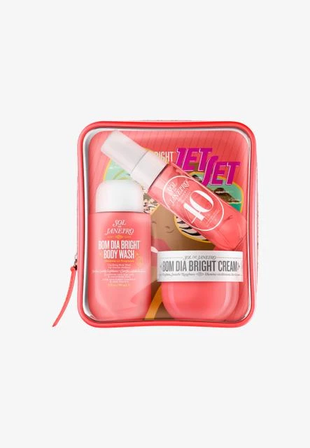 The BOM DIA JET SET is a travel set for body care that features best-selling products for your beauty routine. It includes a brightening shower gel, a body cream, and a fragrance mist.