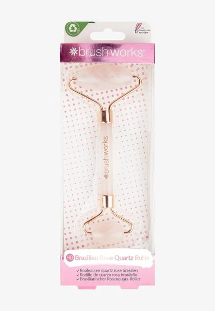 The Brushworks Brazilian Rose Quartz Stone Roller offers countless health benefits. It stimulates blood circulation and massages the skin for a youthful glow. The roller can be used over your favorite serums to enhance absorption. Perfect for cooling, smoothing, and reducing the appearance of pores and puffiness. The product is PETA certified cruelty-free and vegan.