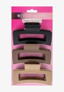 The Brushworks Classic Claw Clips are an essential accessory for elegant and casual hairstyles, perfect for keeping hair in place. Designed for versatility, they suit various hair types. The sturdy teeth ensure a secure grip, keeping the hairstyle in place all day long. These clips are a must-have for anyone seeking impeccable styling. The product is PETA certified: cruelty-free and vegan.