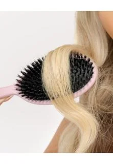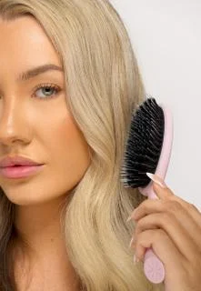 The Brushworks hair brush is designed to smooth and detangle hair with every use. Its innovative design features flexible nylon tips that glide through knots while gently massaging the scalp, combined with dense bristles that help achieve a smooth and shiny finish. Suitable for all hair types, it is perfect for daily use and leaves hair shiny and easy to style. PETA certified, not tested on animals, and vegan.