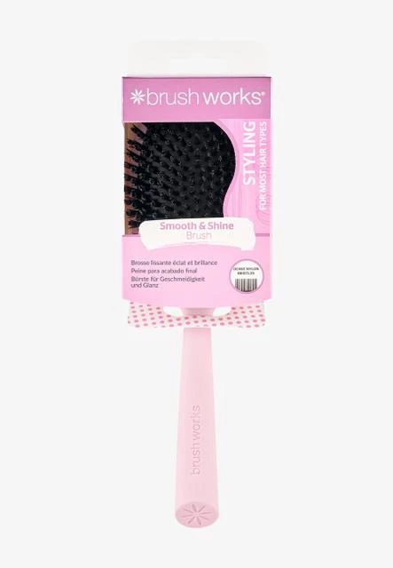 The Brushworks Smooth & Shine brush is an ideal tool for achieving smooth and silky hair. With its stiff nylon bristles, it easily detangles hair, reduces frizz, and adds shine. Perfect for elegant hairstyles, for brushing curls, or for straightening hair. Suitable for most hair types, this brush is also made from 64% recycled materials and is PETA certified, cruelty-free, and vegan.