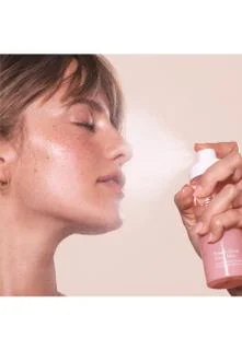 The ultra-fine face spray with peach ferment, peach juice, and vitamin C brightens and hydrates the skin. It provides a healthy glow and glass-like radiance, refreshing thirsty skin all day long with a burst of antioxidant-rich hydration.