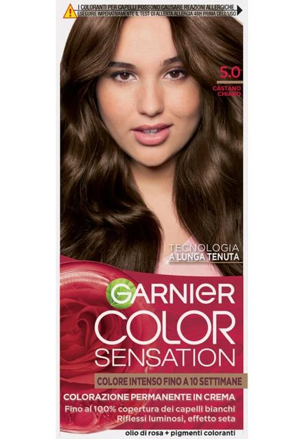 Garnier COLOR SENSATION is a permanent cream color with long-lasting technology. It infuses color pigments into the hair fiber for an intense color lasting up to 10 weeks. It covers up to 100% of gray hair, providing bright highlights and a silky hair effect.