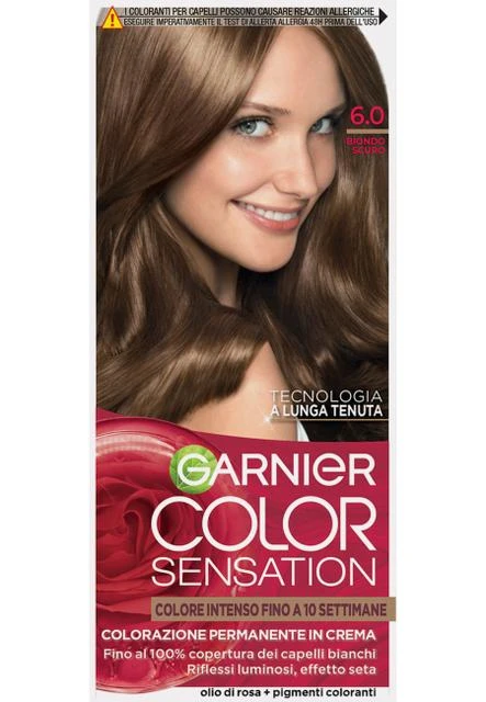 Garnier COLOR SENSATION is a permanent cream hair color with long-lasting technology. This formula infuses color pigments inside the hair fiber, ensuring an intense color that lasts up to 10 weeks. It covers up to 100% of gray hair, providing bright reflections and silky hair.