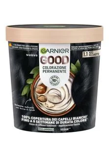 Discover Garnier GOOD, a permanent hair dye with 90% natural ingredients and no ammonia. Its non-drip, mask-like texture ensures easy application and 100% grey coverage. Enjoy a pleasant fragrance and vibrant, healthy-looking color that lasts up to 8 weeks.