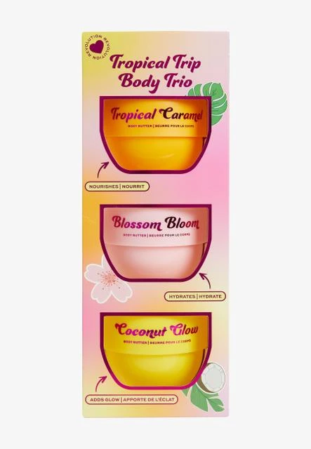 I Heart Body Cream Trio is a set of three mini body creams that hydrate the skin and offer an irresistible scent, perfect for summer. It contains coconut oil, caffeine extract, and hyaluronic acid to take care of the skin.