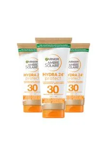 Enjoy high UVA/UVB protection for face and body with this ultra-hydrating sunscreen milk. Its non-greasy, water-resistant formula absorbs quickly, leaving skin soft and protected. This convenient travel-size 3-pack is perfect for on-the-go sun safety.