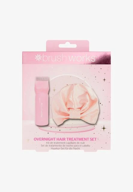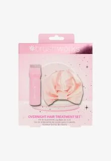 A pampering program for hair: Brushworks Overnight Hair Treatment Set. This exclusive set transforms hair washing into a spa-like ritual, nourishing and hydrating hair from roots to tips. The hair oil applicator ensures precise application, while the high-quality Satin Hair Turban reduces frizz and promotes healthier, smoother strands. The product is PETA certified cruelty-free and vegan.