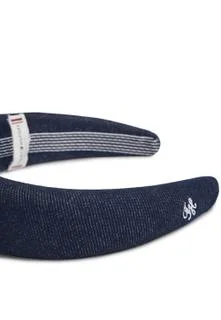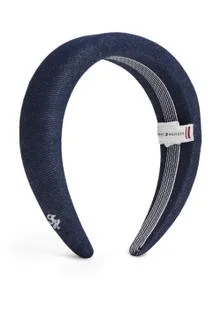 Made of rigid denim, this padded headband features a distinct retro style with a nautical touch. It has a padded design and an embroidered Tommy Hilfiger logo on the side. The circumference is 56 cm and is made of 100% cotton.