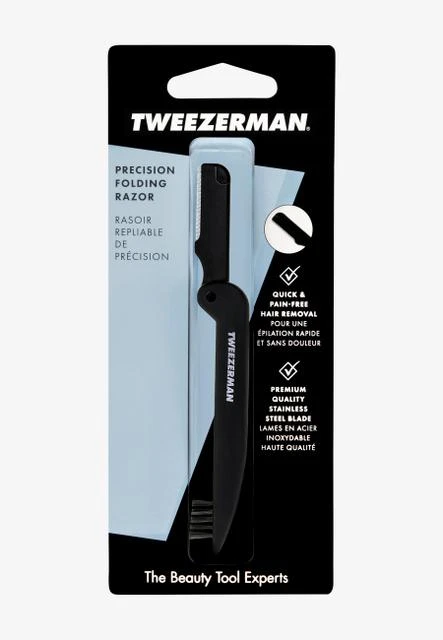 The TWEEZERMAN precision folding razor removes fine hair and fuzz from the face for smooth, elastic skin. It is suitable for shaping eyebrows and beard contours. The stainless steel precision blade, gentle on the skin, allows for pain-free and redness-free hair removal. Easy to clean and convenient for travel.