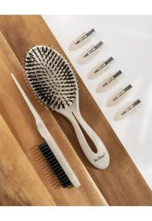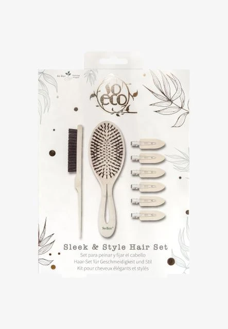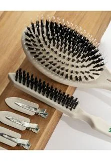 The essential hair set ensures perfectly smooth hair. This exclusive set contains everything you need for a neat and controlled look. The six clips hold the hair securely in place, while the bristle brush minimizes frizz and ensures a sleek finish. The hairbrush also helps you master the perfect "slicked-back" style.
