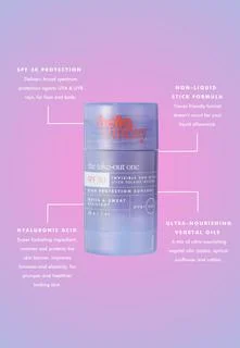 The Take-Out One - Invisiblesun Stick SPF 30 is a versatile sunscreen stick that is easy to use even when you are out of the house. The invisible formula makes application particularly quick and simple, as it leaves no residue that needs to be massaged in. Formulated with an SPF 30 filter, the stick offers broad-spectrum protection against UVA and UVB rays, and thanks to hyaluronic acid and a blend of nourishing oils, it also has moisturizing properties. Lime, geranium, and mint leave a delightful scent on the skin and provide a feeling of freshness.