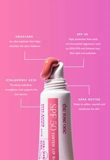 This tinted and moisturizing lip balm offers SPF 50 protection. Enriched with shea butter and hyaluronic acid, this soft and berry-scented formula coats the lips in a nourishing color all day long. Repeated use keeps lips protected, soft, and hydrated.