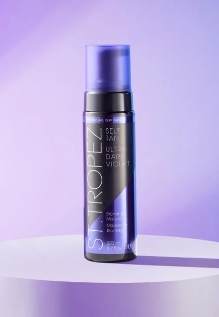 The Ultra Dark Violet Bronzing Mousse from St. Tropez is an innovative product with an exclusive violet base. This product allows for an intense yet natural tan. Enriched with vitamin E and jojoba, it provides long-lasting hydration and applies easily without streaks. The lightweight, non-sticky formula ensures a tan that lasts up to ten days, fading evenly. It can be applied using the Luxe Applicator Mitt. The tan develops in 6-8 hours.