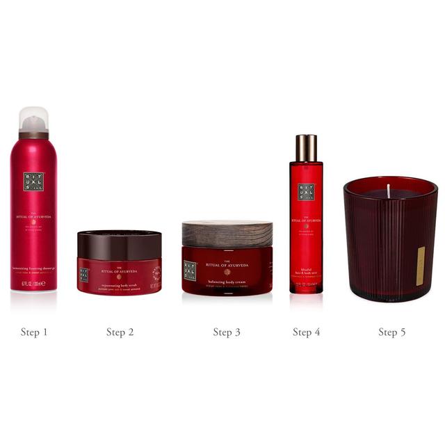 Gjeni harmoninë e brendshme me Scrubin për Trup me Arrë të Ëmbël dhe Trëndafil Indian. Ky scrub eksfoliant është formuluar me kripë rozë nga Punjab dhe guaskën e arrës së ëmbël për të hequr qelizat e vdekura të lëkurës dhe për të aktivizuar rinovimin e qelizave përditësh. Përmban një bazë vajrash ushqyese për një lëkurë të butë dhe të lëmuar. Aroma lulesh kombinon aromën delikate të trëndafilit indian me erën e lehtë të vajit të arrës së ëmbël. Përbërësit kryesorë përfshijnë kripën rozë, e njohur për vetitë e saj pastruese, dhe vajin e moringës, që promovon një shkëlqim natyral dhe të shëndetshëm.