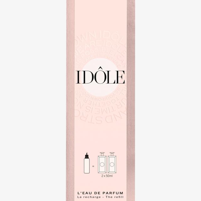 Rimbushni lehtësisht shishen tuaj të Idôle Eau de Parfum me këtë rimbushës praktik. Krijuar për gratë me vetëbesim, Idôle është një aromë e pastër dhe plot shkëlqim me një aurë unike. Kjo fragrancë e paprecedentë përmban nota trëndafili, jasemini dhe një akord të pastër 'chypre'.